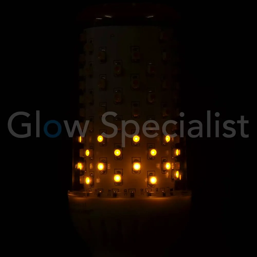 Firelamp E27L-96 smd CLEAR simulates an active flame by means of embedded software linked to 96 SMD LEDs. Can be used outside if the lantern keeps the lamp dry. Gives atmosphere but also about 465 lumen light!
