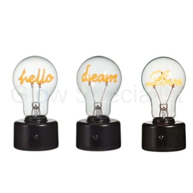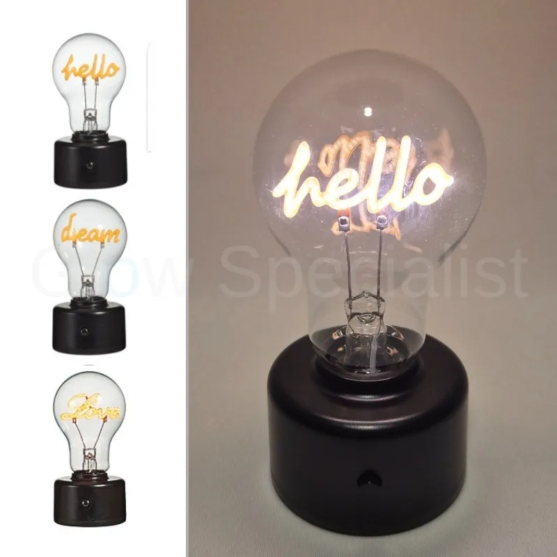 LED LAMP WITH TEXT - DREAM, LOVE OF HELLO - WARM WHITE - 2 X AAA