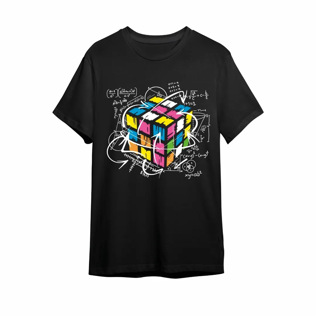 RUBIK TWIST – BLACKLIGHT T‑SHIRT – BLACK WITH NEON PRINT
