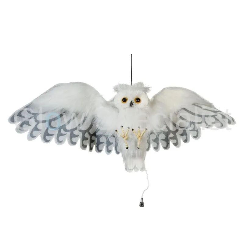 Add a touch of dark magic to your Halloween decorations with the EUROPALMS Halloween Snow Owl , an enchanting 80cm-wide animated figure. This white snowy owl isn't just a prop—it moves its wings, flashes its red LED eyes, and produces terrifying sound effects. Hang it in your haunted house, shop window, or party venue and let it set the mood.