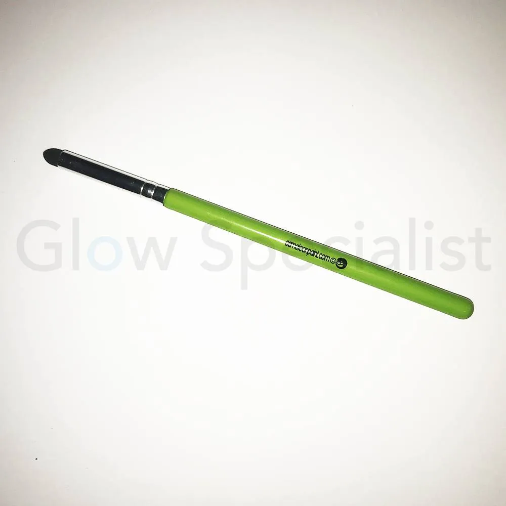 Cameleon Stippel penseel met een kort groen houten handvat en een zwarte harde foam top. Dit penseel of eigenlijk foam sponsje op een steel is ideaal om stippen te zetten. Maak het penseel licht vochtig en druk het in de schmink. Druk het vervolgens op de huid en je krijgt een perfecte ronde stip. Leuk voor bloempjes, stipjes en andere toepassingen. Schoonmaken met warm water en vloeibare zeep. Liggend laten drogen.