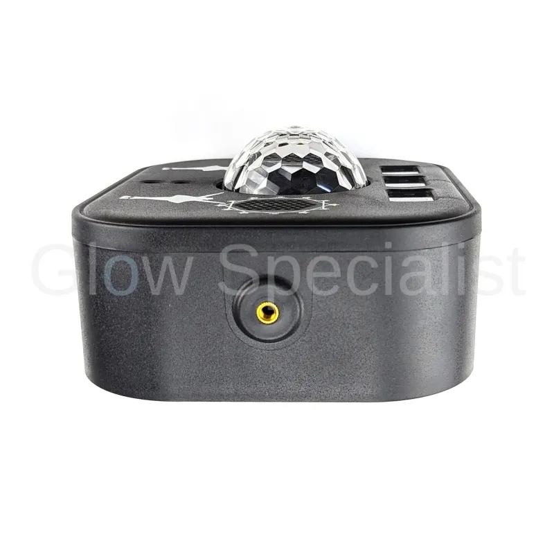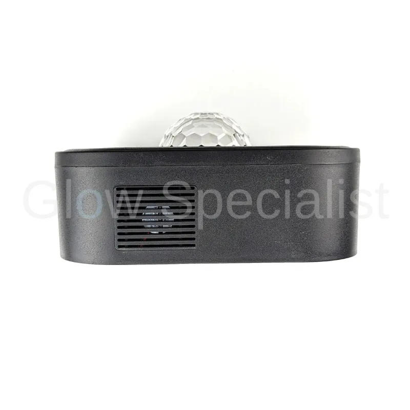 De ingebouwde speakers zijn leuk als je rustig muziek wilt luisteren maar niet voldoende om een feestje te bouwen. Heb je een feest? Pak dan maar een paar goede speakers en hang de Mini FX-5 op. Hij zal niet teleurstellen. Mocht je hem in actie willen zien we hebben er één hangen in onze blacklight showroom.