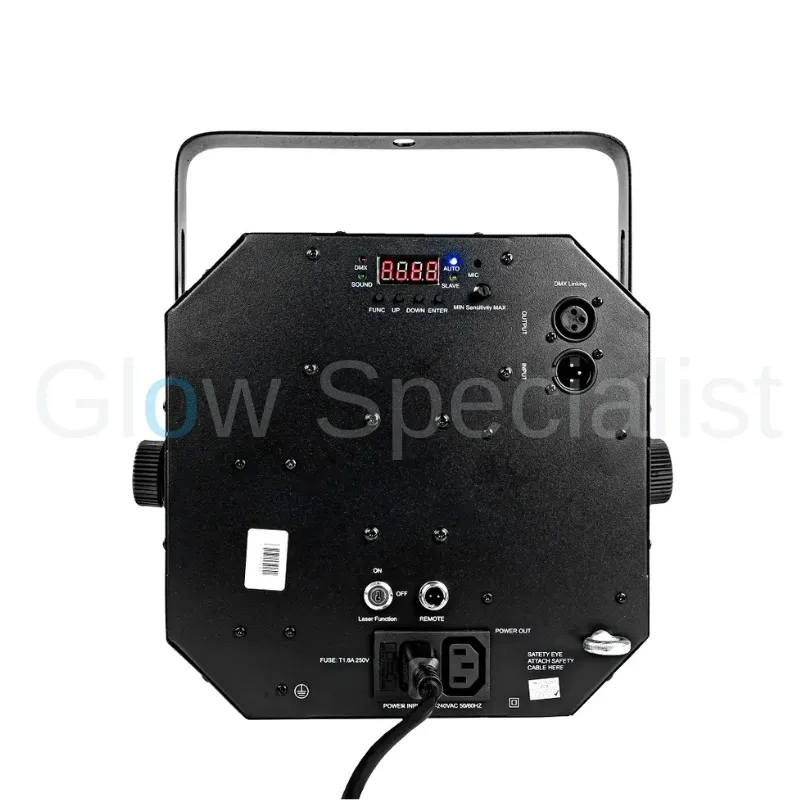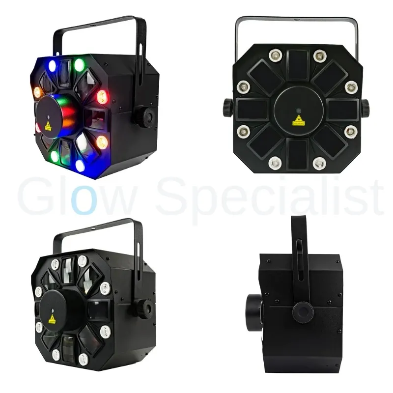 Dit effect heeft namelijk rode en groene lasers, een moonflower en washers (LEDS).
