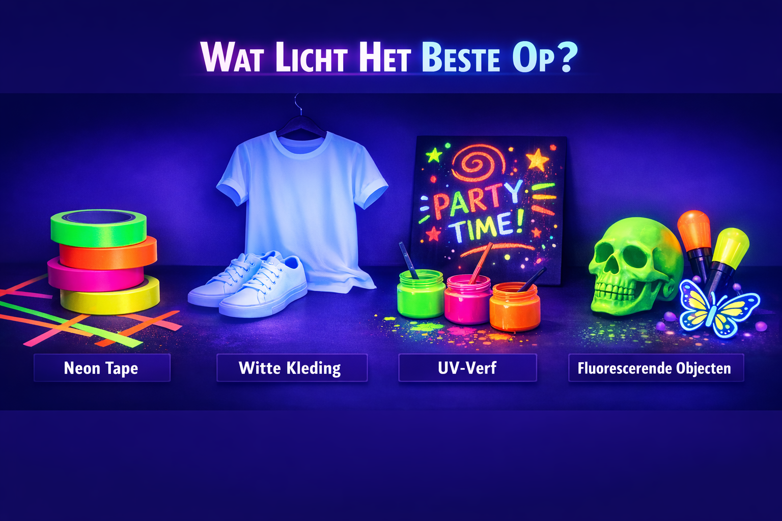 UV‑lampen worden gebruikt voor blacklight‑feesten, glow‑sport, decoratie, inspectie en creatieve toepassingen. Het effect ontstaat doordat bepaalde materialen oplichten onder ultraviolet licht. Deze koopgids helpt je de juiste UV‑lamp te kiezen voor jouw ruimte en toepassing.