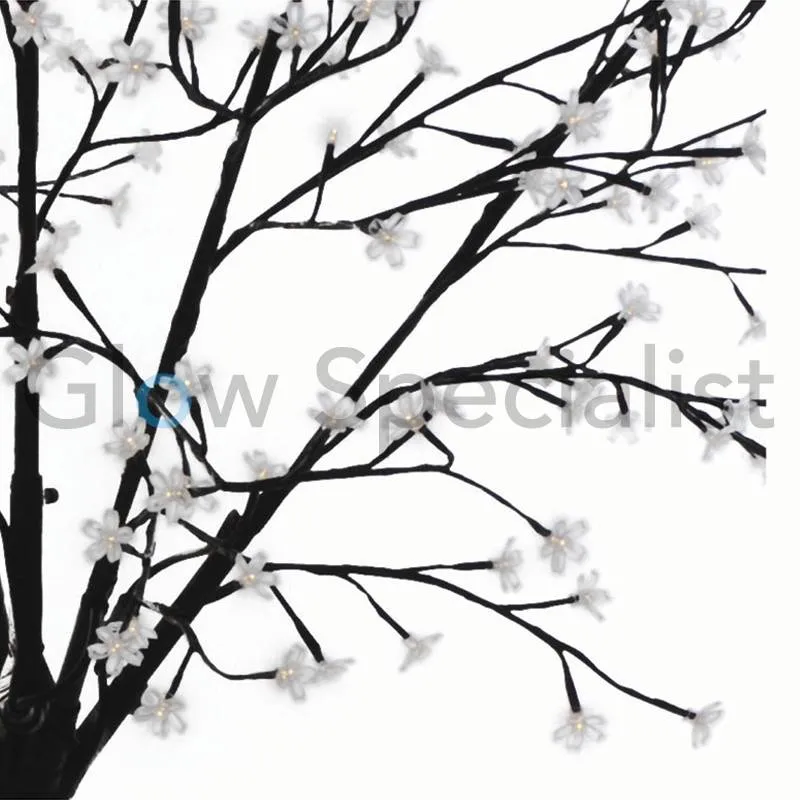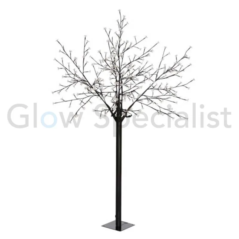 Deze warm wit verlichte led boom met witte bloesemblaadjes is 210 centimeter hoog en bestaat uit een metalen stam en bloesemtakken met in totaal 350 energie-zuinige LED-lampjes.