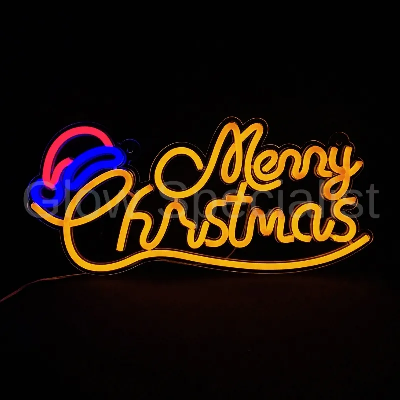 Verkrijgbaar in twee soorten teksten: Rode tekst Merry Christmas met groene kerstboom en een geel/oranje tekst Merry Christmas en een rood/blauwe kerstmuts. Ook leuk om te combineren met onze andere Neon Kerst Led signs.