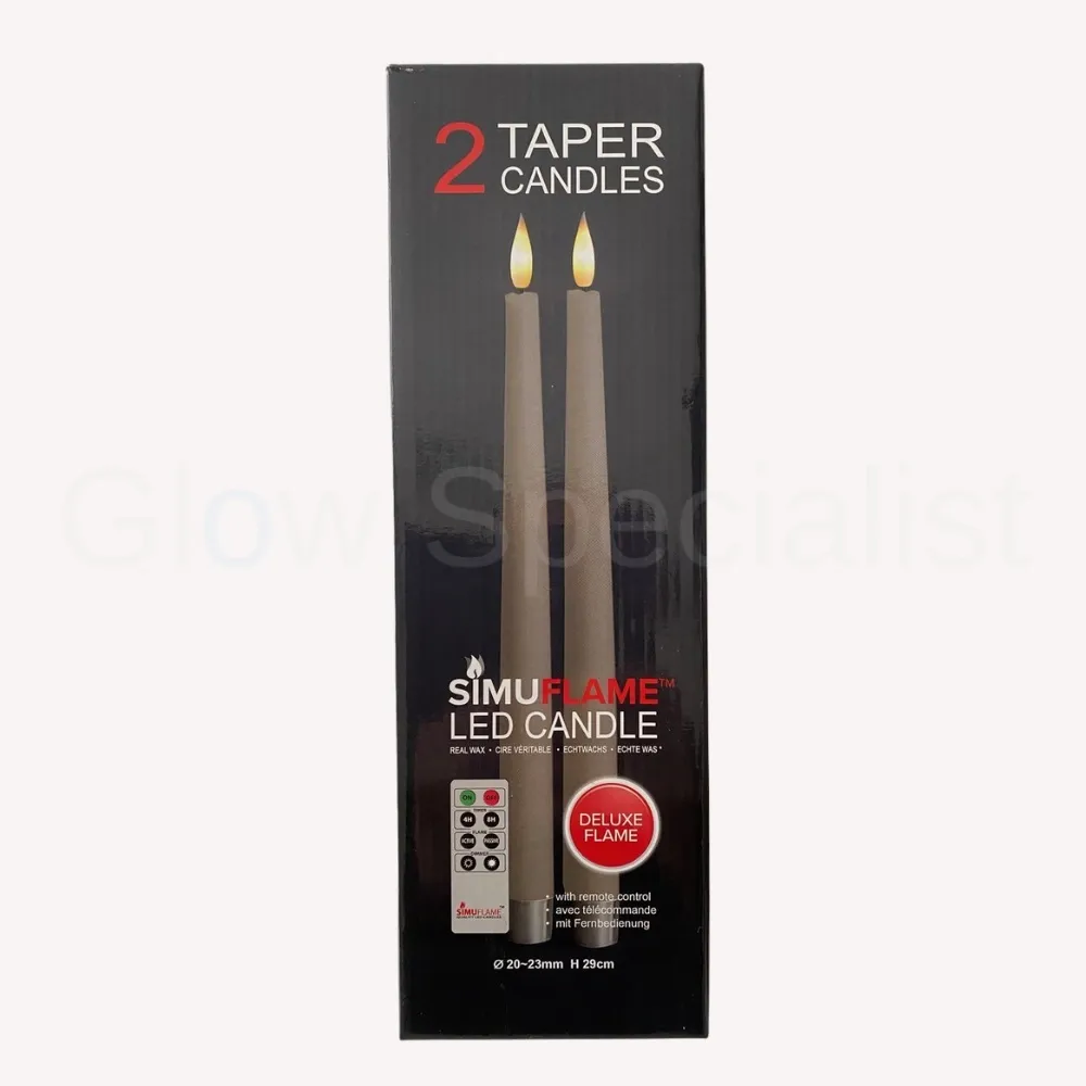We hadden al de prachtige decoratieve LED kaarsen met zeer realistische uitstraling in ons assortiment. Nu zijn de kaarsen er ook in een nieuwe versie, deze Taper Deluxe, een kaars die naar boven taps toeloopt. De kaars heeft onderaan een diameter van 23 mm en wordt naar boven toe smaller tot 20 mm diameter. De Taper kaars is ook iets langer dan de rest, namelijk 29 cm.
