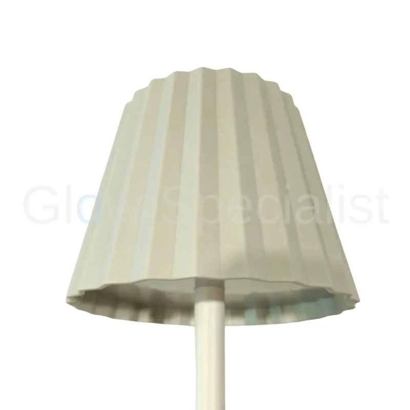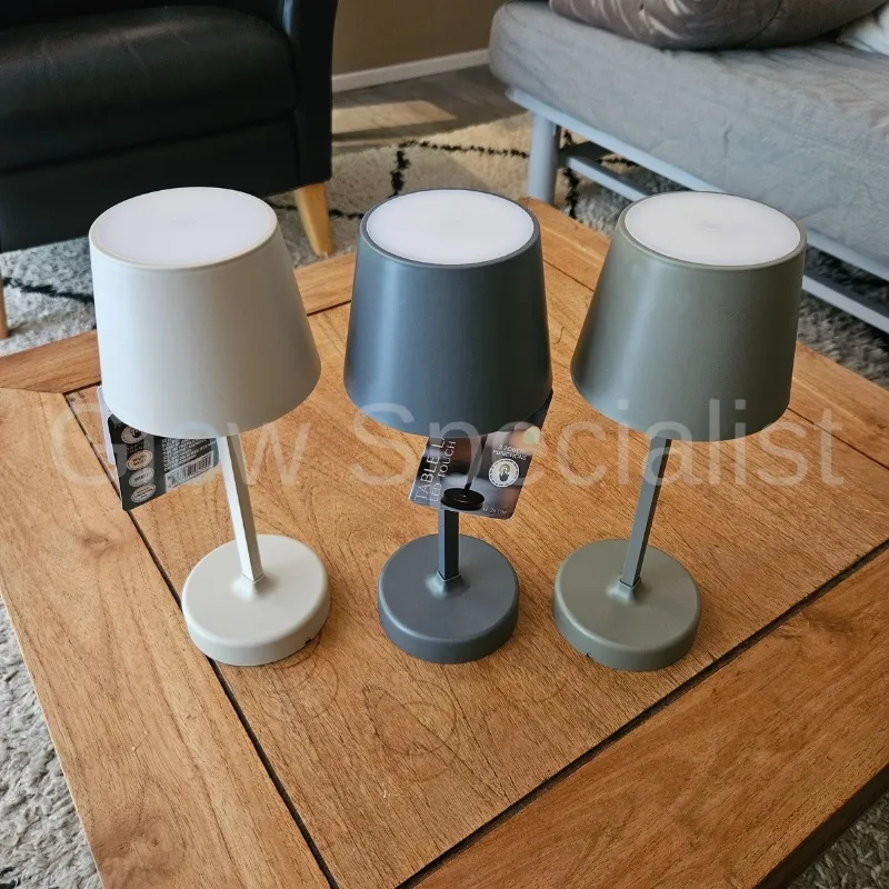 De lamp heeft een ronde voet en een modern 'schemerlampkapje'. Hij is dimbaar en werkt op 3 x AA batterijen (niet meegeleverd). Je zet 'm dus overal neer zonder stroom nodig te hebben. Ook handig voor op je balkon of op de camping. Zorg wel dat hij met regen droog staat.
