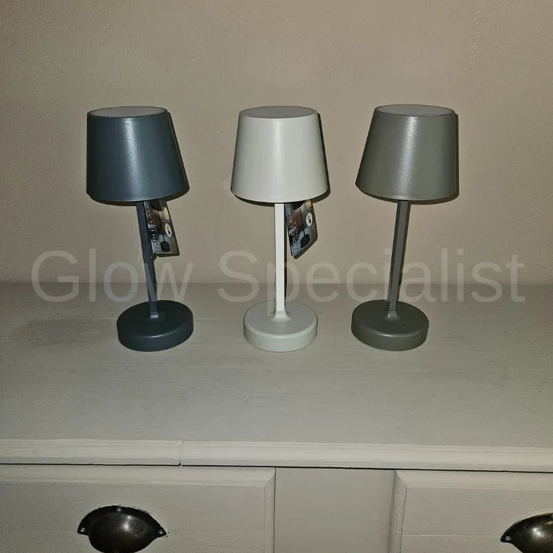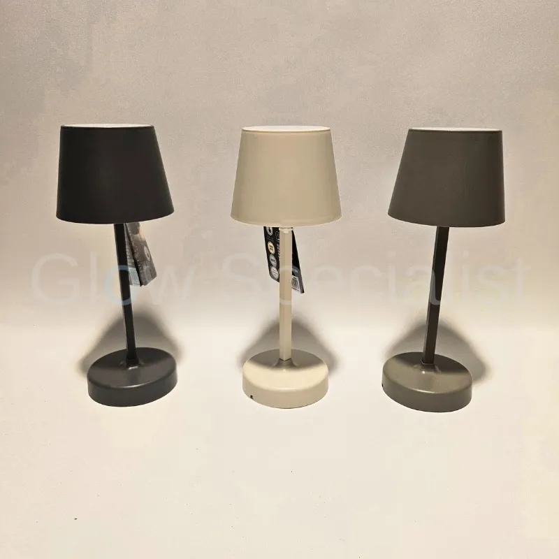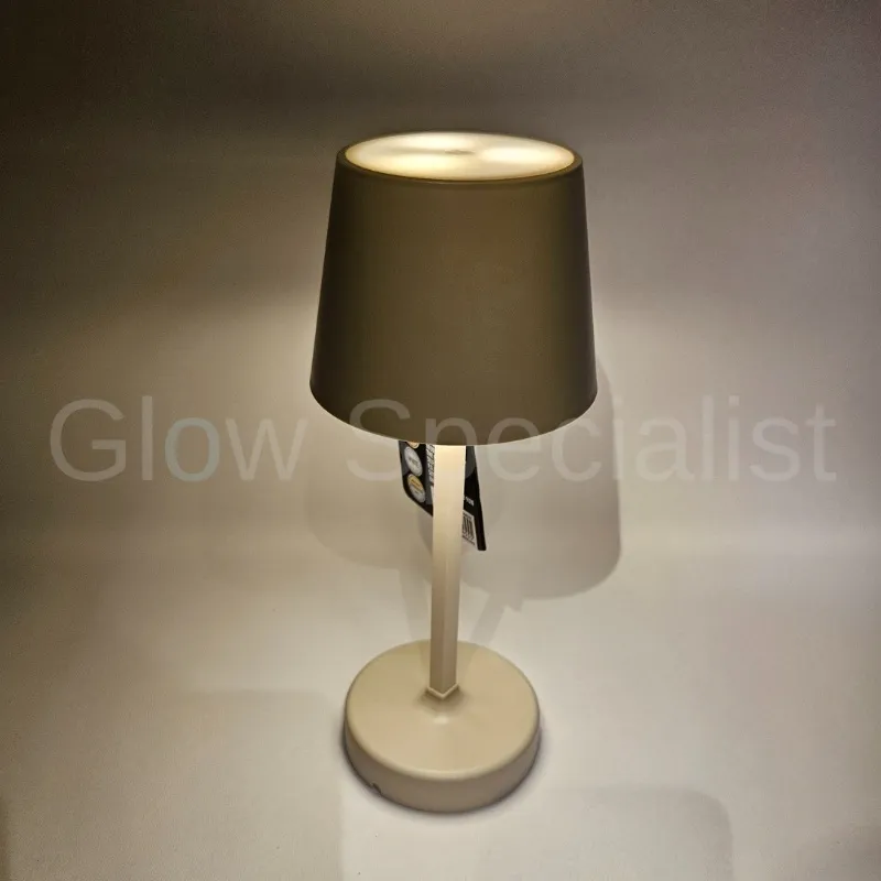 De lamp heeft een ronde voet en een modern 'schemerlampkapje'. Hij is dimbaar en werkt op 3 x AA batterijen (niet meegeleverd). Je zet 'm dus overal neer zonder stroom nodig te hebben. Ook handig voor op je balkon of op de camping. Zorg wel dat hij met regen droog staat.