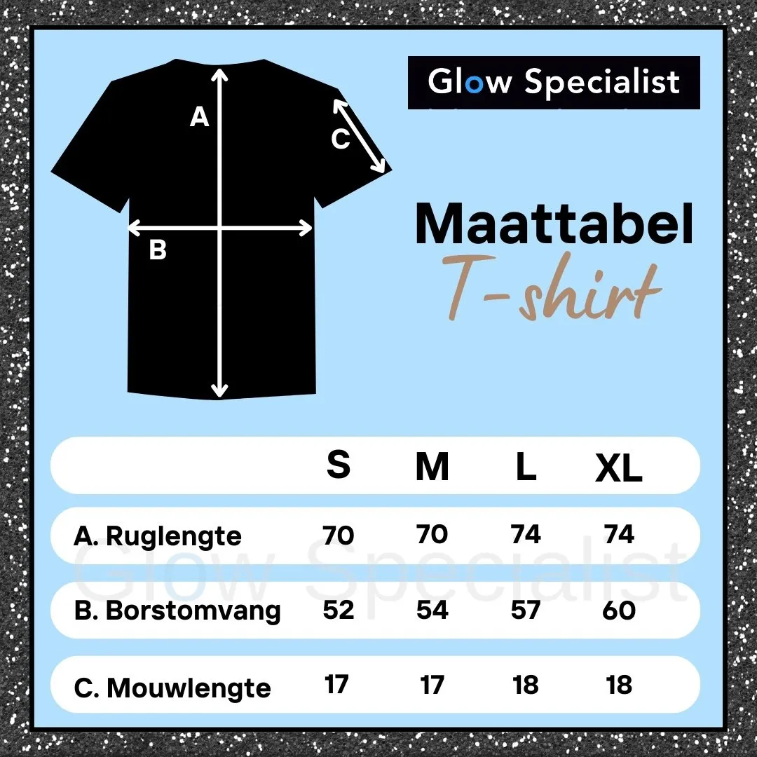 Dit UV‑reactieve blacklight T‑shirt met felgekleurde luipaardprint is een echte blikvanger. In normaal licht al opvallend, maar onder UV‑licht verandert de neonprint in een intens fluorescerend effect. Perfect voor neon party’s, glow party’s, festivals, carnaval en themafeesten. Het uniseks model van 100% katoen zit comfortabel en is ideaal voor iedereen die houdt van stoere neon fashion.