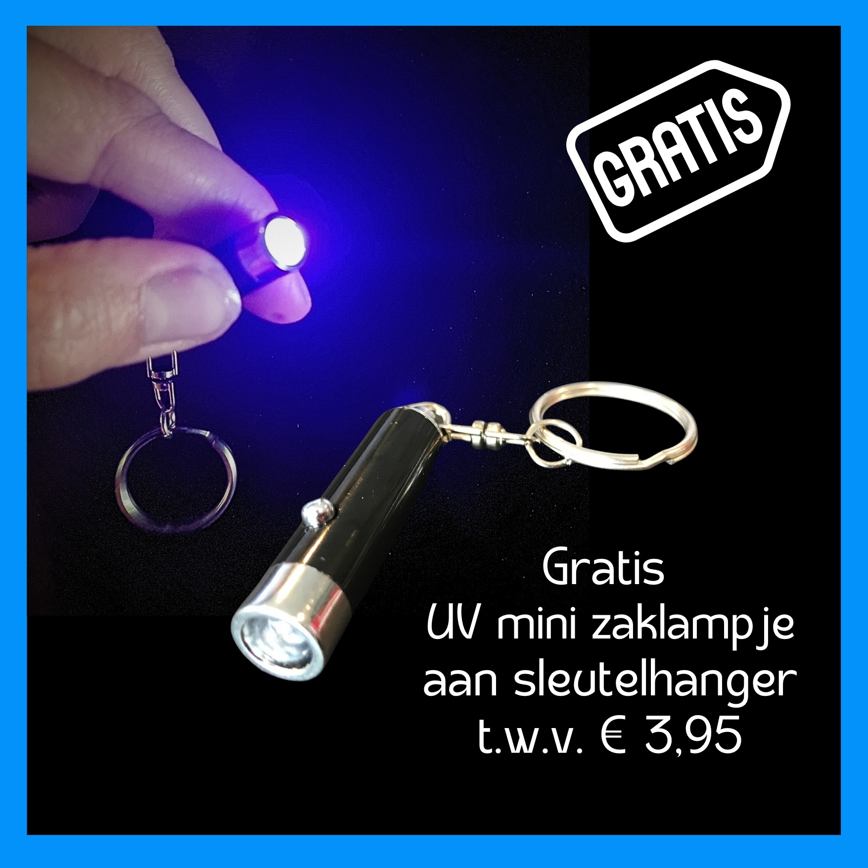 Bestel voor € 20 en ontvang een GRATIS UV MINI ZAKLAMPJE incl. batterijen, ter waarde van € 3.95.