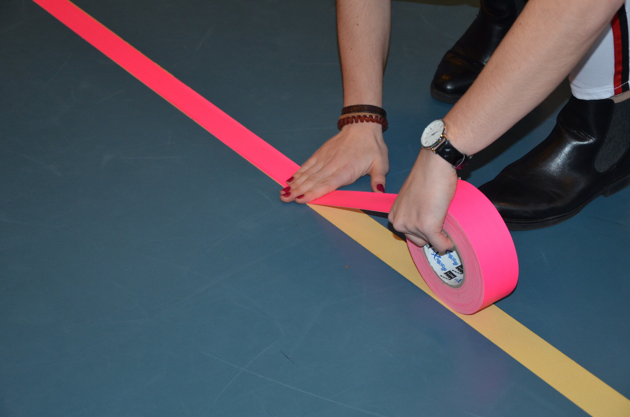 Ja hiervoor gebruiken we dezelfde neon tape. Zorg dat de lijnen goed schoon zijn, zodat de tape beter plakt.